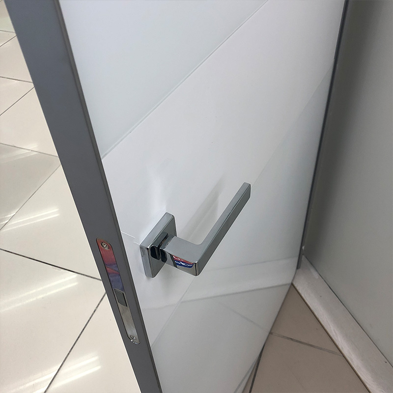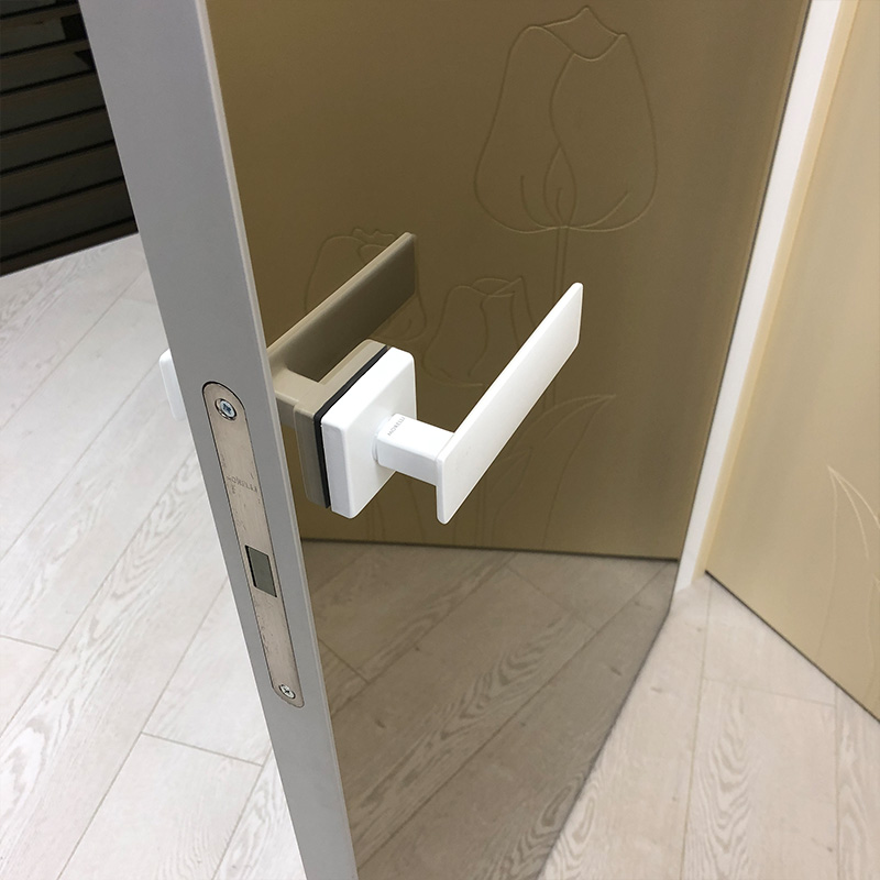 Материалы для изготовления хайтековой двери – металл после шлифования, пластик и стекло. Применяемая фурнитура – блестящая и, желательно,