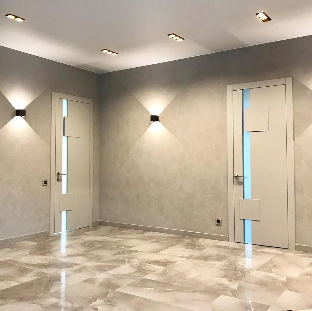 Уникальная, неповторимая линейка, выполняемая в гладкой эмали со шпонированными  элементами. Прямым линиям мы придали объем и разную текстуру, добавили света в виде стеклянных вставок. Коллекцию можно окрасить по палитрам RAL или NCS, а широкий размерный ряд позволит установить двери как в просторный лофт, так и в уютную небольшую студию.