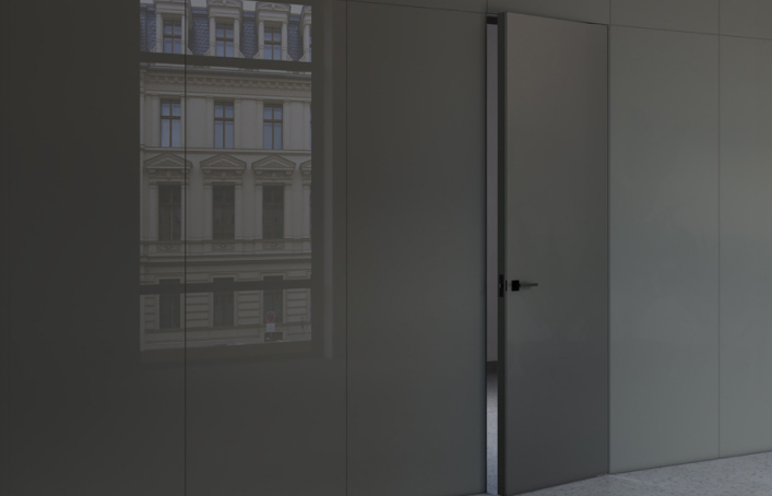 «Наши концепции в дизайне всегда опираются на минимализм и рациональность. Чистые линии и лаконичные формы всегда выстраивают строгую логику в оформлении интерьеров. В своих проектах мы почти всегда используем двери со скрытым монтажом, в сочетании с шпонированными панелями, с зеркалами или просто под покраску они помогают нам организовать ту самую притягательность минимализма.»Видео о скрытых дверях