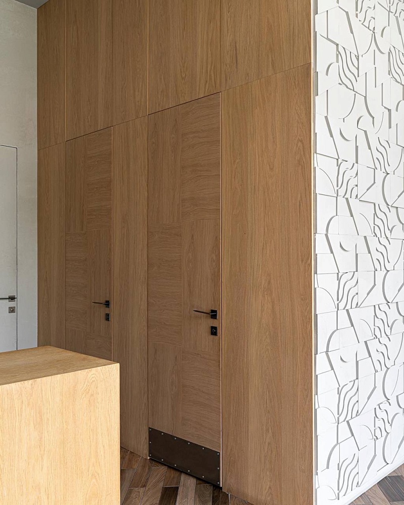 - когда в проекте много дверей, полезно часть из них сделать "невидимыми" - это делает интерьер визуально более "легким", чистым, лаконичным