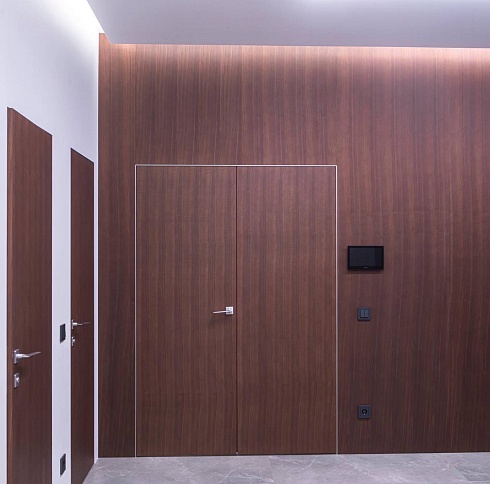 «Двери скрытого монтажа незаменимы в интерьере, где есть стеновые панели. Они позволяют сохранить ровные линии стен и создать единое пространство помещения.»