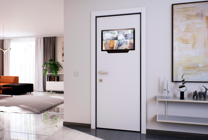 По сути, это встроенный планшет большого формата: вы можете управлять им так же, как привычным сенсорным устройством. Яркий Full HD дисплей служит видеодомофоном, панелью управления и информационным табло одновременно.